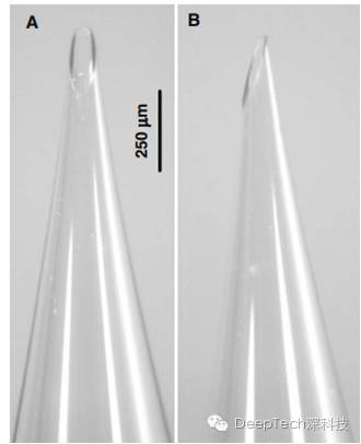 用于眼部给药实验中所使用的空心微针。图片来源:J. Jiang, et al., Pharmaceut. Res., 2009